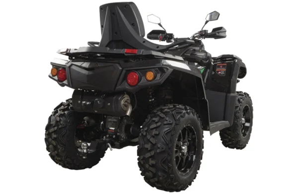 Og så er der bare god plads til fører og passager! Modellen er lidt længere i chassiset (XL-model) end mange andre ATV’ere. Den længere akselafstand giver bedre køreegenskaber i terrænet, og plads til et større sæde, så der sagtens kan være to på maskinen, hvis I skal en tur ud på marken eller i skoven. Husk, at køres der på offentlig vej, må der kun være 1 person på ATV’en.